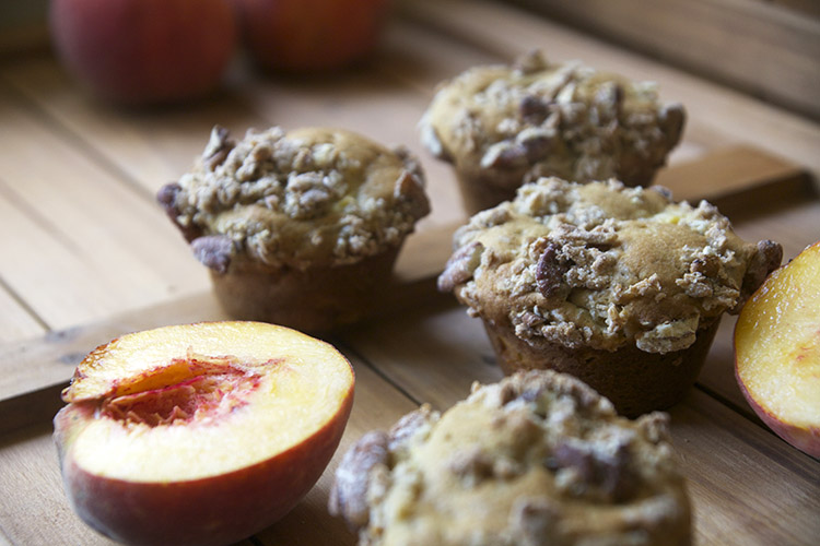 What if the bottoms of those muffins were absolutely chock-full of fresh, juicy baked peaches? Sweetened with maple syrup and kept moist and dense with Greek yogurt? Oh man, that would totally sell me on those muffins.
